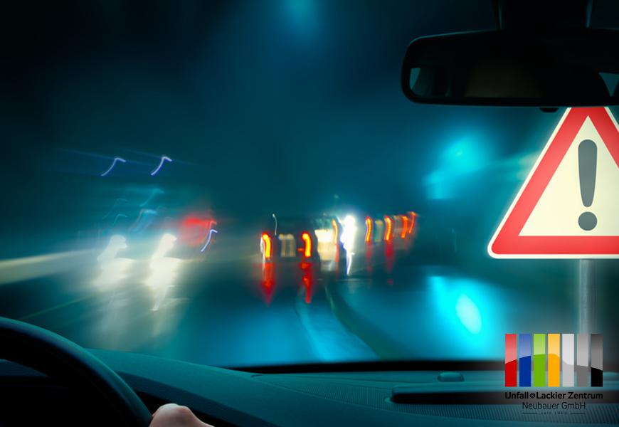 Das Auge ist nachts bei Weitem nicht so leistungsfähig wie man es selbst einschätzt. Insbesondere auf Autobahnen wird schneller gefahren als tagsüber. Das liegt zum einen daran, dass ganz einfach weniger Verkehr herrscht, zum anderen daran, dass das Auge weniger Informationen zu verarbeiten hat. Aber: Es ist dunkel, man sieht nicht so viel, was am Straßenrand so passiert und unterschätzt so die Gefahren, die trotzdem drohen. Gern wird sich am Rücklicht des vorausfahrenden Fahrzeugs orientiert, die Gefahr von Auffahrunfällen steigt auch dadurch erheblich.