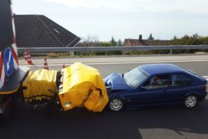 Ergänzend zur Präventionskampagne «Richtiges Verhalten auf Autobahnen» wurde nun ein Unfall unter wirklichkeitsnahen Verkehrsbedingungen simuliert. Nachgestellt wurde die Kollision eines Autos, dessen Fahrer durch die Bedienung eines Smartphones abgelenkt war. Ziel der Übung: das korrekte Verhalten bei einer Baustellensignalisation aufzuzeigen. Denn eine solche Signalisation verweist immer auch darauf, dass Bauarbeiter in der Nähe tätig sind. Die Aktion wurde gemeinsam von der Generaldirektion Mobilität und Verkehr, dem Strassenverkehrsamt, der Kantonspolizei Waadt und dem TCS organisiert. Demonstriert wurde dabei auch die Wirksamkeit von Anpralldämpfern. Der Schutz- und Rettungsdienst der Stadt Lausanne und die ECA gewährleistete die Sicherheit während der Übung.