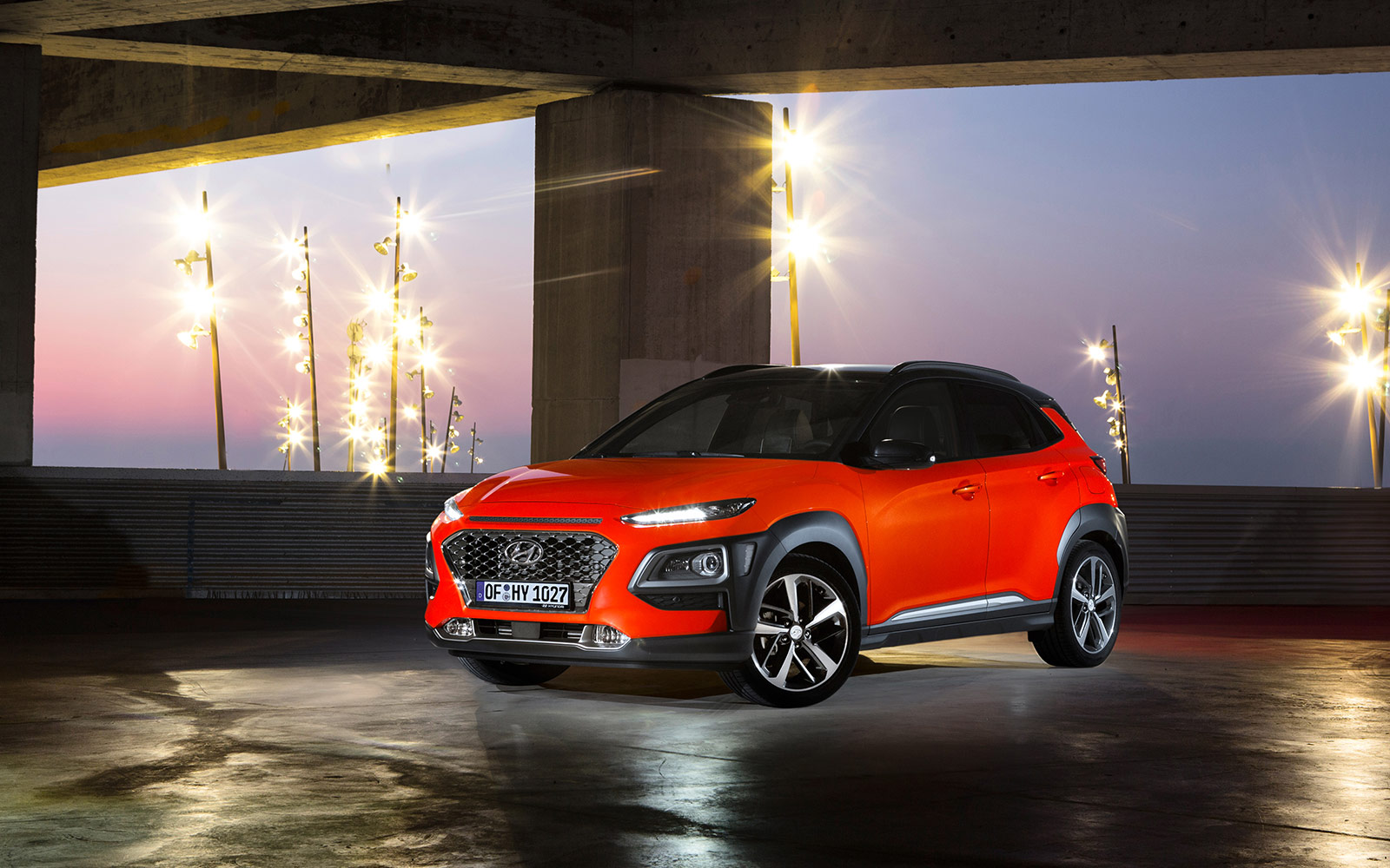 Die Antriebspalette des Hyundai Kona umfasst zwei Benzinmotoren und zwei Diesel, die ein Leistungsspektrum von 85 kW/116 PS bis 130 kW/177 PS (Kraftstoffverbrauch in l/100 km für den Hyundai Kona: innerorts 8,4-4,8, außerorts 6,2-3,9, kombiniert 7,1-4,3; CO2-Emissionen in g/km kombiniert: 160-113; CO2-Effizienzklasse: D-A) abdecken und bereits jetzt die erst ab September 2019 verbindliche Abgasnorm Euro 6d-Temp erfüllen. Je nach Motorisierung erfolgt die Kraftübertragung über ein Sechsgang-Schaltgetriebe oder das Doppelkupplungsgetriebe 7DCT mit sieben Fahrstufen. Ein weiterer Faktor für mehr Sicherheit und Fahrstabilität: Die beiden stärkeren Motoren sind mit Allradantrieb erhältlich. Berganfahrhilfe und Bergabfahrassistent sind zudem in allen Variante serienmäßig an Bord.