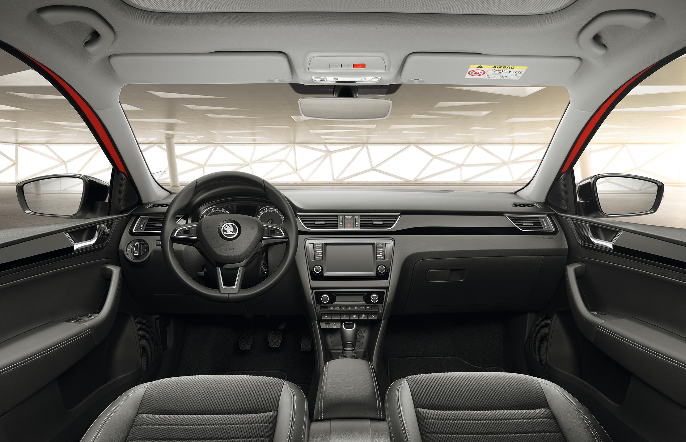 Auffälligste Neuerung der neuen Modellgeneration ist die modern gestaltete Front mit modifizierten Nebelscheinwerfern im unteren Teil des Stoßfängers. Ein schmaler Chromstreifen (Serie bei Ausstattungslinie Style) verbindet die Leuchten und lässt die Frontpartie noch breiter wirken. Dunkel eingefärbte Deckgläser der Rückleuchten in markentypischer C-Form verleihen der Heckansicht ein besonders sportliches Design. Zu den Erkennungszeichen des aufgewerteten SKODA RAPID SPACEBACK gehört außerdem die verlängerte Heckscheibe (Serie bei Style). Die bekannt große und weit aufschwingende Heckklappe ermöglicht ein leichtes Beladen des Kofferraums. Bei beiden Modellen wird die Seitenansicht durch den langen Radstand und die coupéartige Silhouette mit der scharfen Tornadolinie geprägt, die für ein Wechselspiel von Licht und Schatten sorgt.